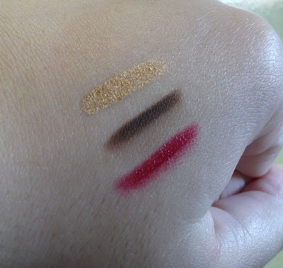 Lápis para olhos - Cor Marrom: a pigmentação é excelente, vem com esfumaceador e escovinha para sobrancelha no próprio lápis, esfuma fácil, adorei usá-lo para corrigir as falhas da sobrancelha, mas acho que ficou devendo um pouco na textura, ele poderia ser um pouco mais macio.